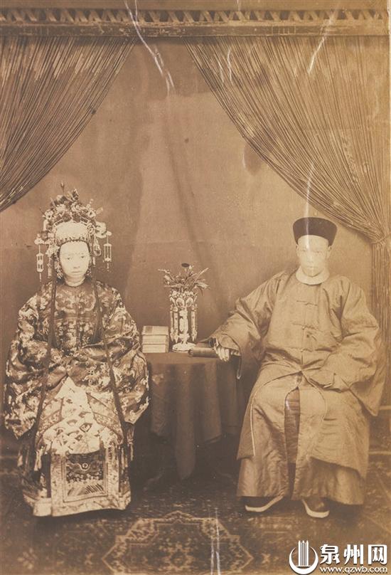 1895年拍摄的中国新郎、新娘。