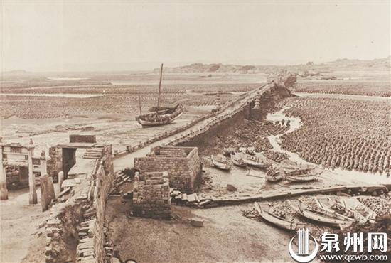 在洛阳桥老照片上可见一座牌坊立于桥头