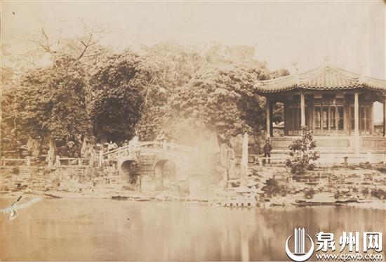清末,泉州考棚(亦称贡院)设在打锡巷内(今为鲤城区人民政府所在地)。泉州海交馆副馆长林瀚从美国南加州大学图书馆照片数据库中发现的一张1895年的老照片显示,清末泉州考棚后方有花园,并且有池塘、小桥、阁楼、假山等,流水淙淙、园池飘香,环境堪称雅致。考棚作为泉州府考选所属各县秀才的场所,是当时士民关注的一个焦点所在。从这张风景秀丽的照片我们可以看出,当时泉州对于考棚四周环境的重视与保护,尽力为考生们创造良好的应试环境。