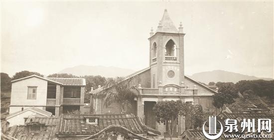 清同治二年(1863年),英国长老会杜嘉德牧师来泉州城内传播基督教义。三年后,教会建成了泉州第一座教堂——基督教泉南堂。1895年,教会又创建了泉西堂(泉州西街礼拜堂),其首任牧师是晋江安海人吴封波。1894年拍摄的一张“泉州长老会中国成员”合影揭示在泉西堂创建之前,长老会已经发展了不少中国成员。美国南加州大学图书馆数据库里一张摄于1914年的“珠婚志喜”照,显示的是吴封波牧师在珠婚纪念日与妻子及家人的团圆照。吴封波之子吴炳耀后来也成了牧师。1925年泉西堂便是在吴炳耀牧师的主持下进行重建的,越年落成。1926年的一张照片,拍摄的正是刚重建落成的泉西堂。从照片上来看,教堂是一座具有欧洲哥特式风格、中西合璧的建筑物,其四周则有众多闽南红砖厝建筑。