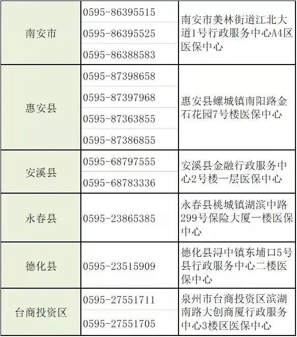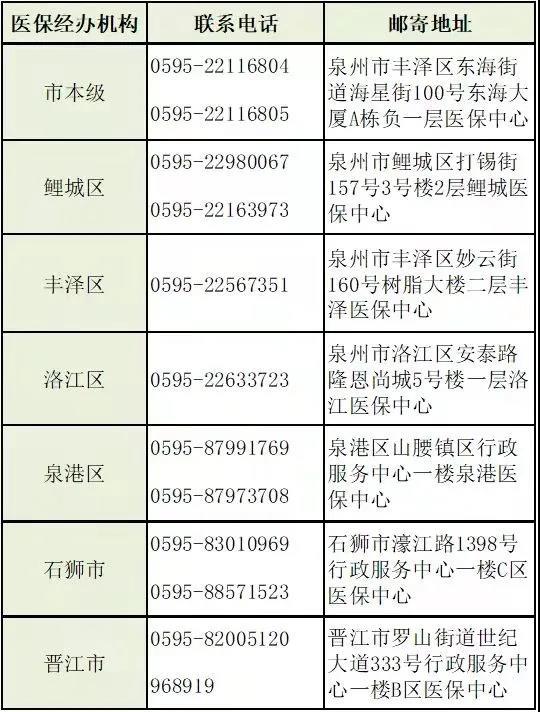 泉州市医保经办机构咨询联系方式:
