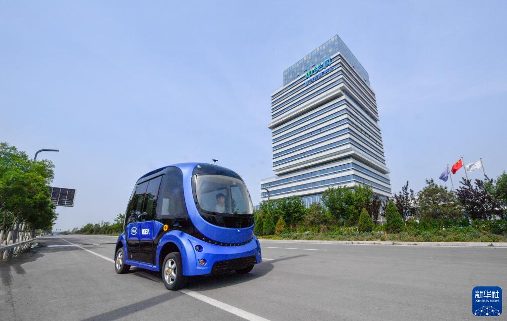 一辆无人驾驶汽车在京津中关村科技城内部道路进行道路测试(5月19日摄)。新华社记者 孙凡越 摄