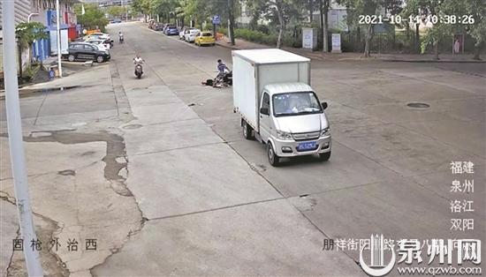 泉州网10月22日讯 (记者李菁 通讯员吴晶晶 文/图)15岁少年无证驾驶未登记的摩托车,载着13岁同伴与人当街飙车,结果在路口刹车不及撞上了一辆小货车,两人均不同程度受伤。