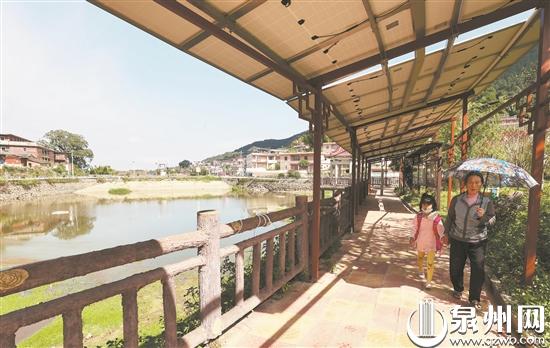 车子开进海拔500多米的高田村,记者看到两侧村居屋铺设深蓝色光伏板,在深秋暖阳照耀下熠熠生辉;一条近百米的由光伏板构成的长廊,蜿蜒在村庄一处湿地公园里;就连村道上的路灯用的也是太阳能的……