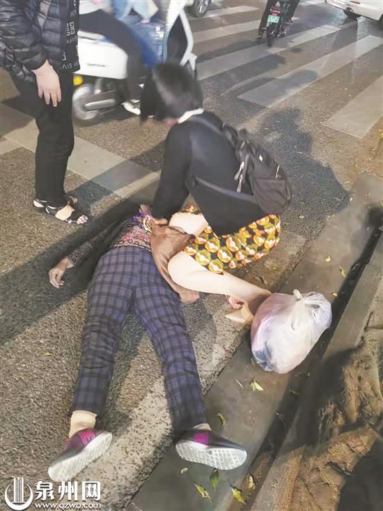 家住市区打锡街的杨巧蓉是南安人,今年38岁,她是两个孩子的母亲,在晋江的泉州东尚服饰有限公司上班。当天17时许,同事冯石灵开车载着杨巧蓉到泉州市区状元街一带办事,她们将车停到承天寺后门附近的停车位时,发现对面的道路上围着几个人。两人快步走上前看到,一位上年纪的阿婆昏迷了,同行的两三个阿婆试图去搀扶。
