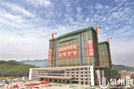 泉州网11月1日讯(记者 蔡紫旻/文 张九强/图)10月31日上午,省重点民生建设项目福建童昌医院封顶,计划于2022年10月开业。