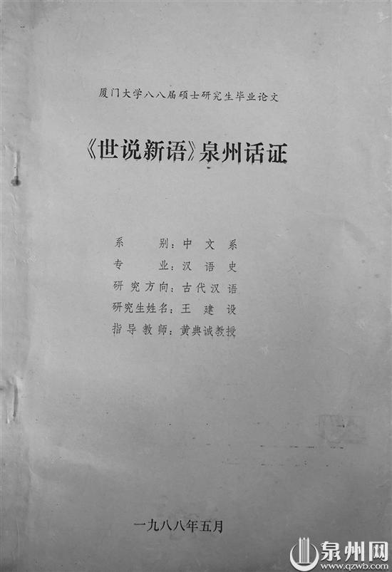 王建设:我在厦门大学学的是古代汉语专业,但因导师黄典诚教授最擅长用方言和古汉语相互印证,导师的治学方法对我产生了直接的影响,特别是在我为硕士论文选题发愁时,又恰好是导师以方言作为切入点的建议提醒了我,所以我幸运地走上了闽南方言研究之路,并凭着自己的执著,这么多年一直坚持了下来。