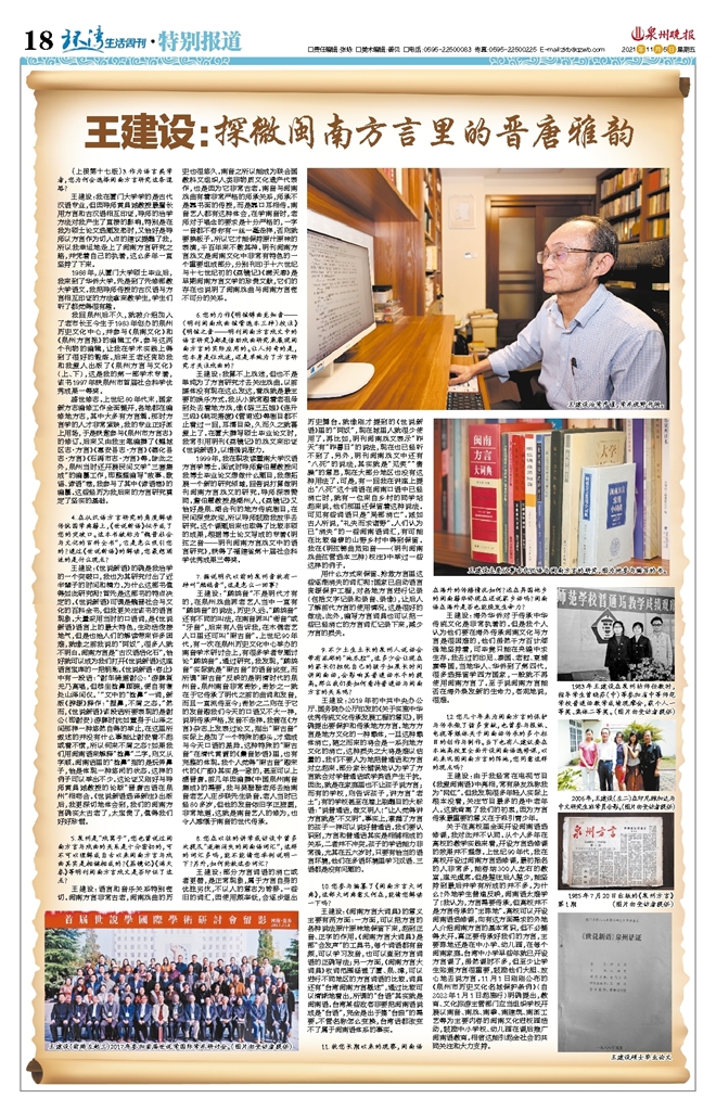 说起古代汉语与闽南方言,王建设侃侃而谈。
