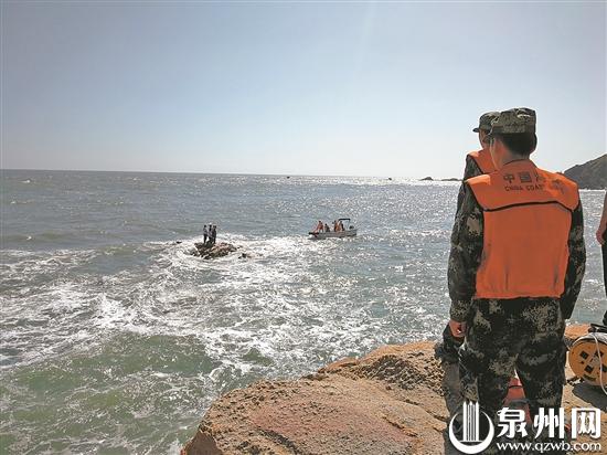 当天11时50分左右,海警95110接到报警求助,有5名群众被困在惠女风情园附近海域的礁石上。海警部门立即启动应急救助预案,同时联系崇武边防派出所及崇武镇海上救援协会协助搜救。