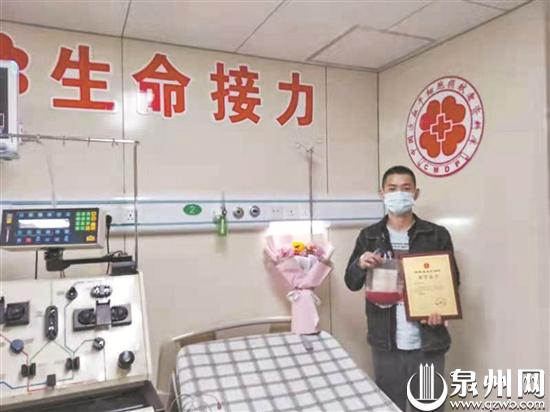 泉州网11月9日讯 (记者黄耿煌 陈灵 文/图)11月6日,捐献完造血干细胞的吴灿阳回到家,受到南安市红十字会和南安柳城街道办事处及杏莲村村委会的热烈欢迎。5日,他在福州完成了造血干细胞的捐献,为一名素未谋面的3岁孩童送去新生的希望。