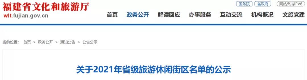 按照《福建省文化和旅游厅 福建省发展和改革委员会关于开展省级旅游休闲街区认定工作的通知》要求,综合会议评审、现场检查结果,经厅党组会研究同意,现将2021年省级旅游休闲街区名单予以公示,公示时间为11月8日—12日。