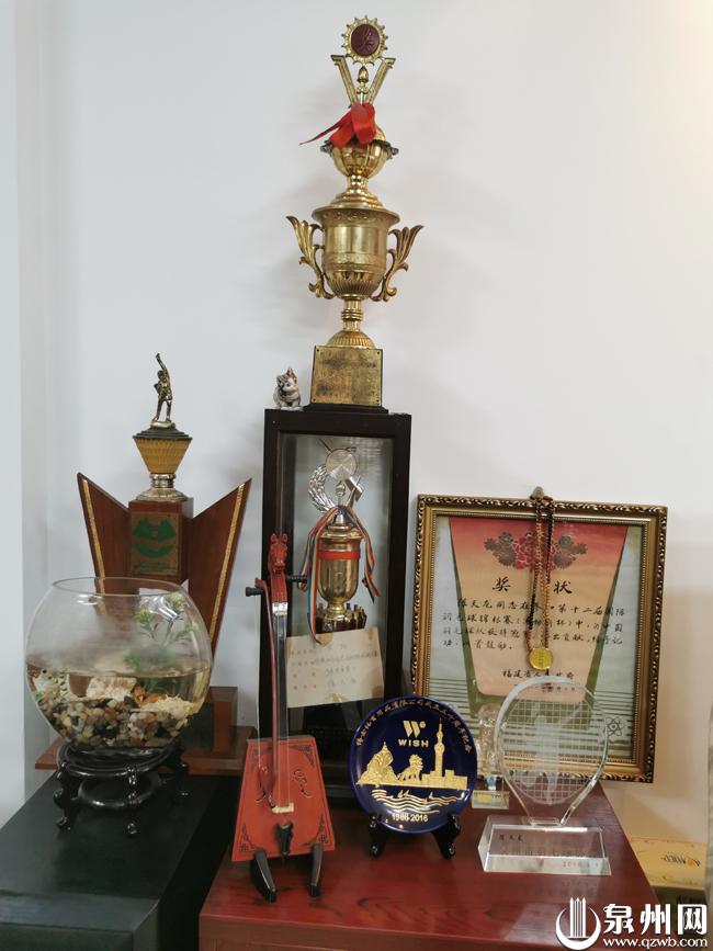 指挥巷陈天龙家中的部分奖杯和奖状。
