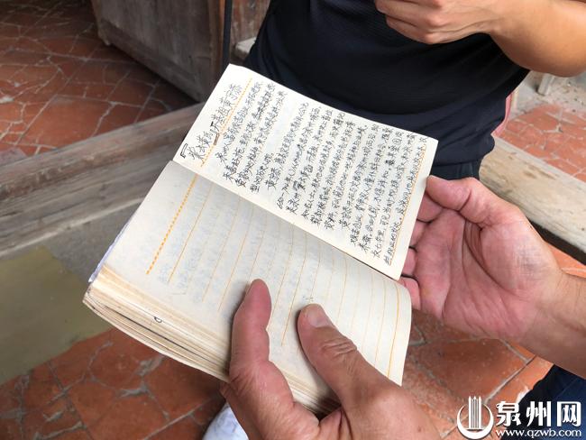 黄荣荣在笔记本上工整地记载黄家的历史渊源。