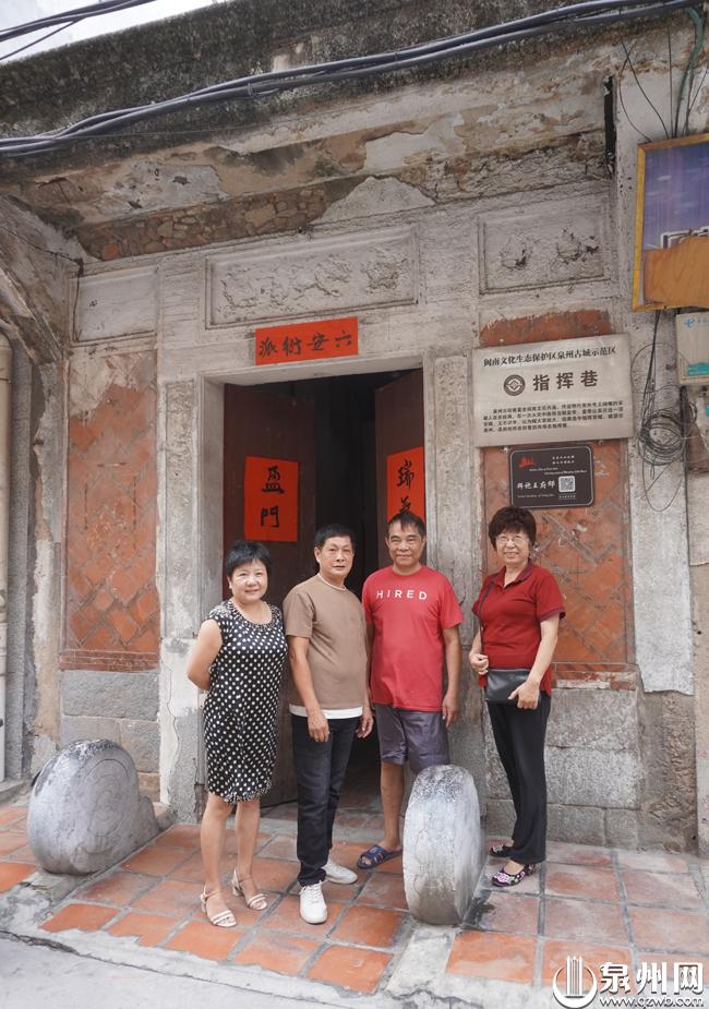 王奕增介绍说, “指挥巷”和“拜袍街”说的都是王家故事。王家门前有四个字“六安衍派”,“六安”指的是安徽六安。明代王家因救驾有功,王鉴受封泉州卫指挥使,皇帝赐给王家一件龙袍。指挥衙设在附近,所以这里叫 “指挥巷”。王家将龙袍供奉在府第大厅,门前还有石碑,文武官员到此落轿下马跪拜,所以王家前的这段巷子又叫“拜袍街”。家中原有族谱一部,后毁于1966年。据读过族谱的长辈回忆,族谱中载有指挥衙府第图,上面显示如今的侨光影剧院所在地是指挥衙的养马场。
