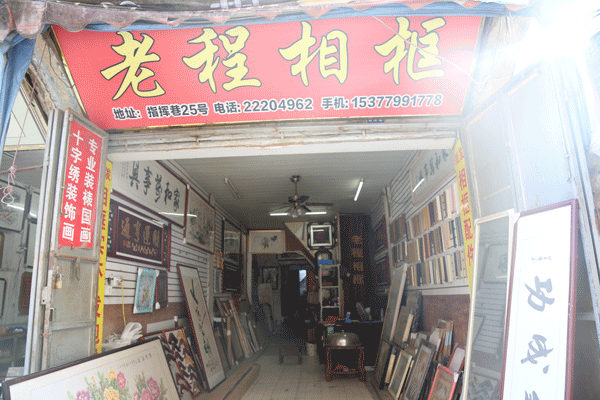 位于指挥巷靠近中山南路的老程相框,从开店至今已有三十多年历史。据介绍,这家店从老板的爷爷开始经营,已经传承三代。“不想浪费爷爷的心血,所以还是想接着做下去。”老板介绍道。这条小巷中,店龄二三十年的还有好几家。(许培吟)