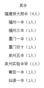 据了解,在17名省队队员中,福州11人,厦门2人,泉州2人,莆田2人。福建师大附中学子占其中9席,超过全省半数。