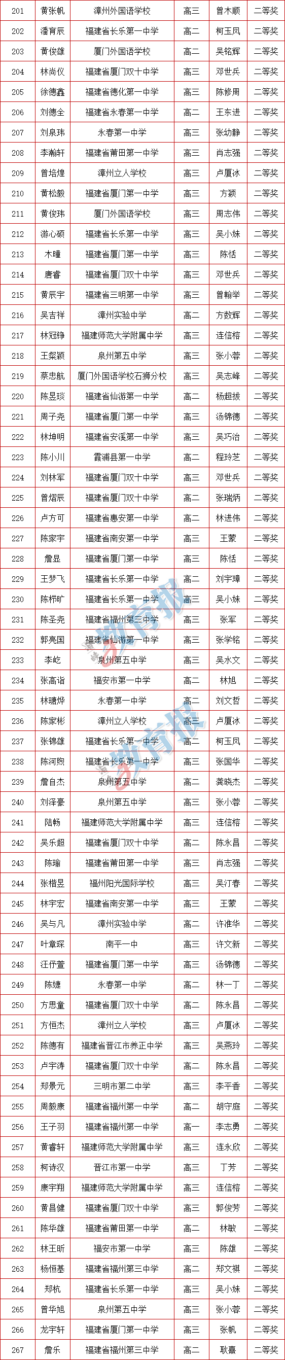 值得一提的是继物理省赛大丰收之后福建师大附中在数竞省赛上再次大丰收,恭喜他们!