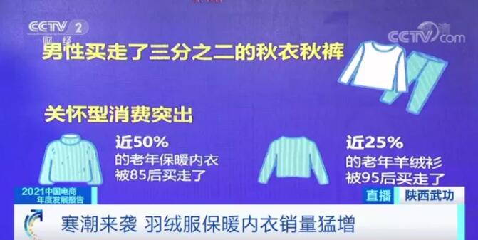 寒冷的天气还是表达心意和问候的最好时机,数据显示,今年“双11”销售中,近50%左右的老年保暖内衣被85后消费者买走了,近25%的老年羊绒衫被95后消费者买走,很有可能是天冷了,晚辈买给长辈表达心意的一种方式。