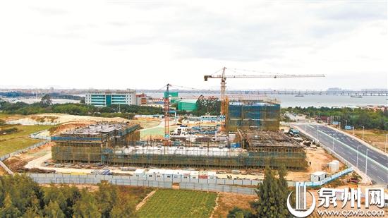 今年以来,泉州市加快推进交通重点项目建设,构建现代综合立体交通体系。作为石狮港后物流园区的重要综合服务配套项目,泉州港石狮航运中心项目将着力打造集口岸联检、通关服务、物流企业运营、楼宇商务配套等功能于一体的综合服务性大楼,推动港口物流企业集约化发展。记者日前在该项目工地看到,一期两栋主体功能楼已经全部进入地面结构施工,项目累计完成8800万元投资额,占年度投资计划的88%,雏形渐显。(陈小阳 詹伟志 许晓城 摄)