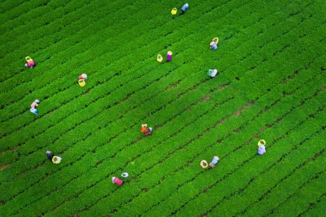 在茶乡安溪,片片茶园,青翠欲滴,犹如为茶山铺上一块块绿毯。图为茶农采茶忙。