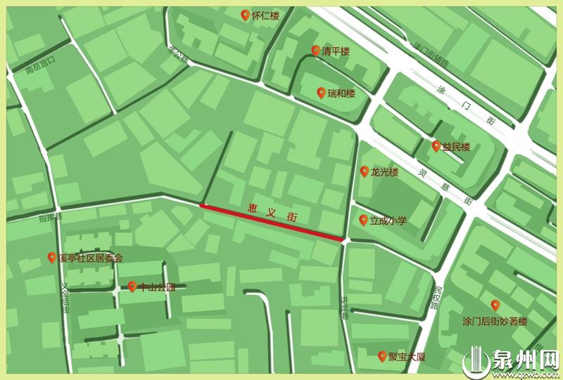 惠义街位于泉州鲤城区中山南路东侧,西接傅厝巷,东抵金狮巷,这里原有一个惠义境,该巷属之,故名,也称为惠义巷、烧下埕。