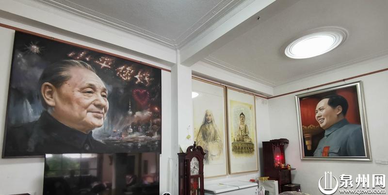 客厅墙壁上是吴茂全和妹妹吴惠宝的肖像作品。