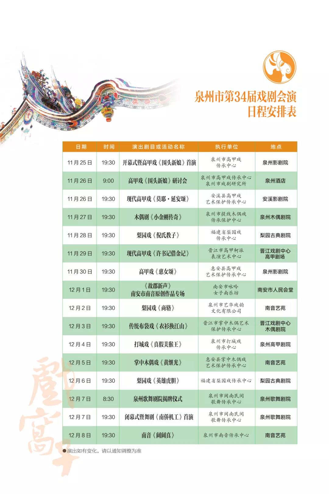 11月25日,第八届福建艺术节泉州分会场活动暨泉州市第34届戏剧会演拉开序幕,此次会演时间为:11月25日~12月8日,共有14台好戏轮番上演。