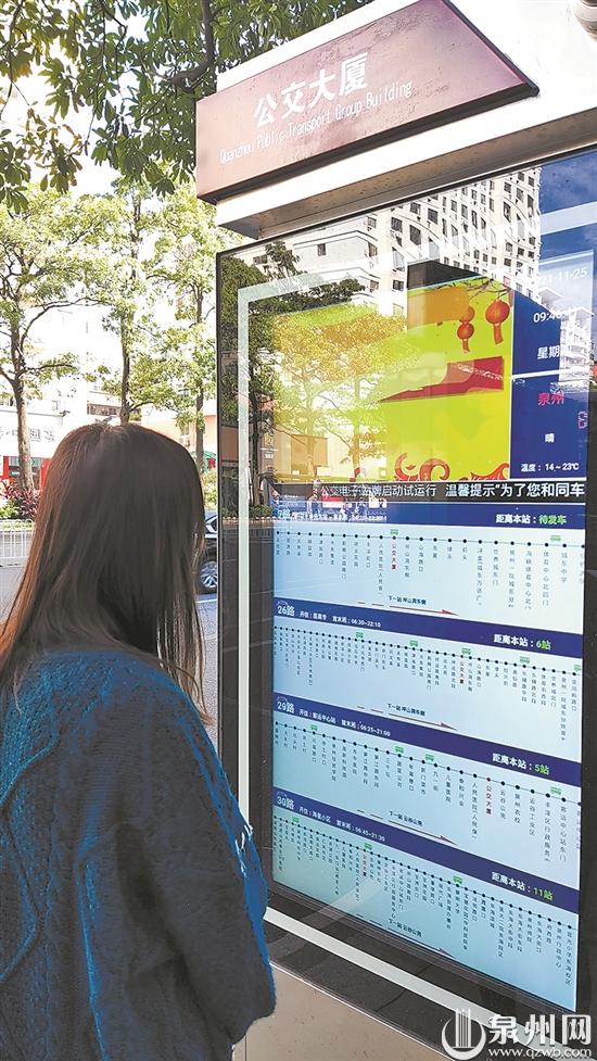 泉州网11月26日讯 (记者陈小芬 通讯员柯馨 文/图)作为泉州智慧城市公交系统重要组成部分,电子站牌二期昨日全面投入试运营。至此,泉州市区168座公交电子站牌全线投入使用。