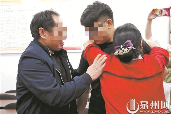 今年4月份,在晋江警方帮助下,与家人失散24年的小赖与来自湖南的亲生父母相认。(资料图片)