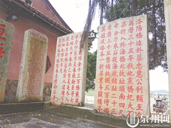 洛阳桥上的碑刻多有提及蔡襄造桥之功(吴拏云 摄)