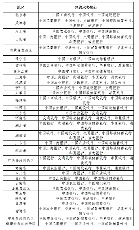承办预约兑换工作的银行业金融机构: