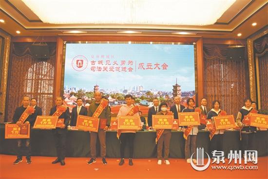 泉州网12月9日讯(记者 许小程 王盼琛 通讯员 黄嘉泽 黄炜鹏 文\图)昨日,泉州鲤城区古城见义勇为司法关爱促进会成立。“促进会成立旨在健全完善见义勇为人员保障制度,努力营造倡导见义勇为、弘扬社会正气的良好社会氛围,同时解决部分司法救助对象生活困难,健全完善司法关爱体系。”泉州鲤城区古城见义勇为司法关爱促进会会长陈超群表示,促进会成立后,将持续完善制度保障、组织管理、权益保护等体系建设,通过健全的保障体系和大力的宣传,努力打消市民“扶不扶”“救不救”等思想顾虑,让鲤城区见义勇为和司法关爱事业更具影响力。