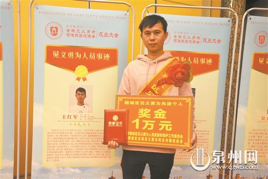 随后,鲤城区举行了见义勇为表彰大会,8名2021年见义勇为先进个人(群体)受到表彰。其中,王红军、吴玉旋、张建平被授予“鲤城区见义勇为先进个人”荣誉称号,邱安淇、杨欣祺、范静仪、洪定华、陈福裕被授予“鲤城区见义勇为先进群体”称号。