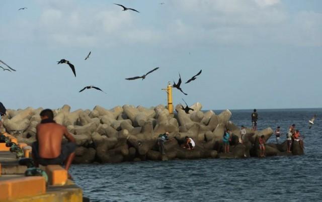 2010年4月9日,尼加拉瓜南圣胡安湾,游人在海边玩耍。(新华社发)