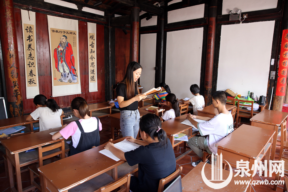 老师在碧溪书院内为孩子们讲国学(陈晓东 摄)