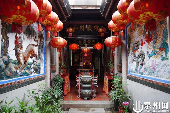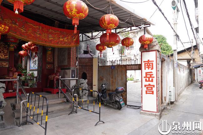 在富埕后巷的南岳宫,南岳宫董事会成员王建成、薛宗仁、卢金龙介绍,泉州古城除了“清紫葵罗”四大名山,还有五岳之数,分别是东岳凤山、西岳龙山、南岳溜石山、北岳狮山、中岳云山。其中南岳溜石山有一座南岳庙,位于泉州南门外晋江市池店镇溜石村,始建于宋代,后因古城内信众朝拜不便,分炉于泉州古城大门铺南岳境的群众戏院东畔,又称南岳宫,成为南岳境的境庙。