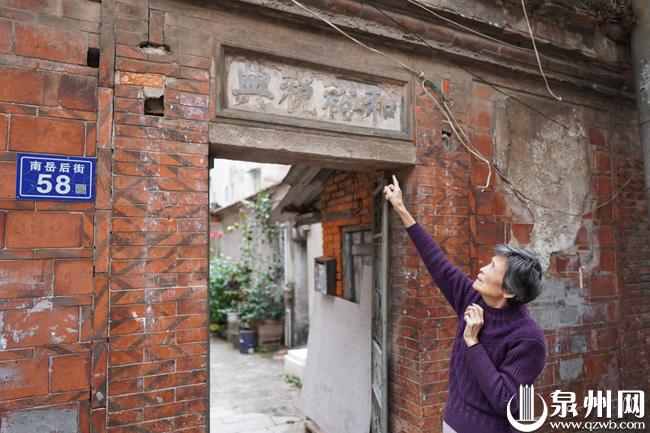 南岳后街58号,门楣上有“和裕税典“四个字。据陈家的陈丽玉介绍,陈家祖籍晋江,后来到南岳后街开典当行,商号为”和裕“,在城南很有名。陈家老宅已经不存,里面楼房是三十年前盖的。如今老宅仅剩门面墙,墙上四个字当年用泥灰封起来,避免被毁坏。