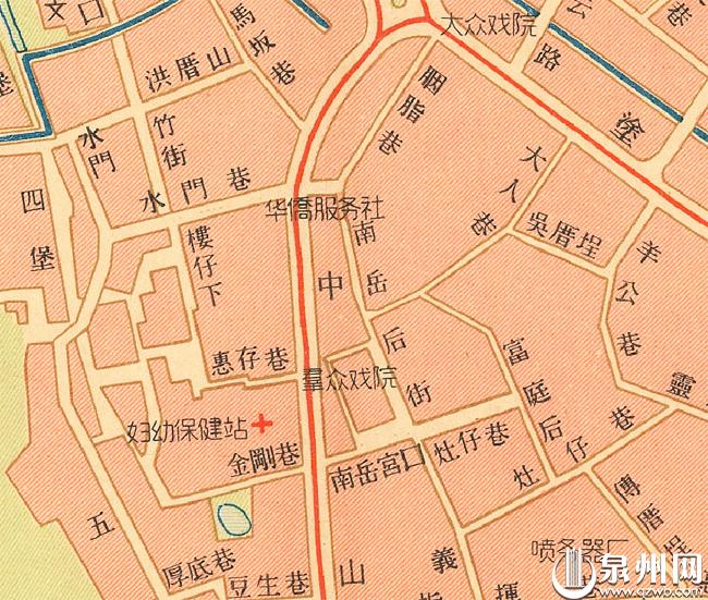 旧地图上华侨服务社和南岳后街。(林孙民/供图)