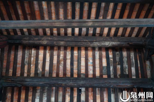 黄家古厝的旧房梁保留下来,精美的纹饰隐约可见。
