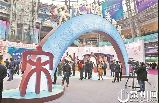 泉州“海丝”精品展区采取图文并茂的形式展示了宋元时期与泉州建立联系的海外国家及地区数量变迁表、遗产分布图、运输网络、航标塔、宗教僧侣等资讯,并安排了泉州老字号特色产品及木偶戏、南音表演、歌仔戏等非遗文化系列展演。