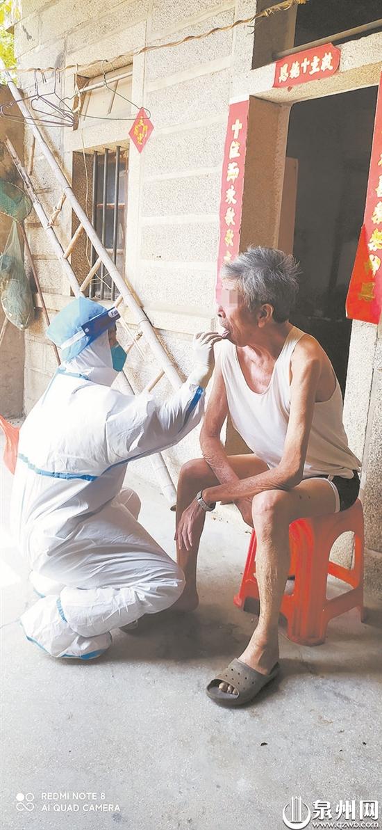 一院护士庄阿琼回泉港老家抗疫,入户为邻居采集核酸。