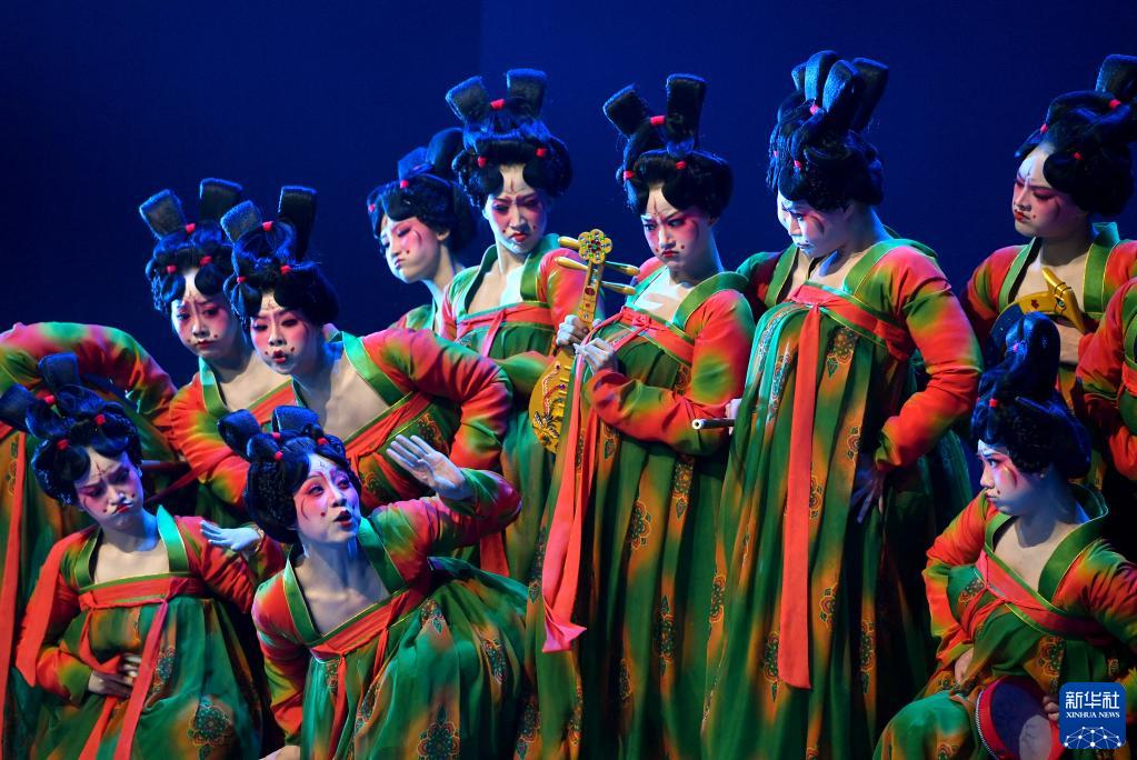 演员在第十二届中国舞蹈“荷花奖”古典舞终评演出上表演《唐宫夜宴》(2020年10月16日摄)。新华社记者 李嘉南 摄