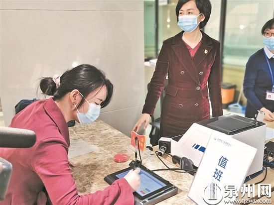 泉州市商务局局长参加“局长走流程”活动,站窗口推荐“掌上办”。(市商务局 供图)