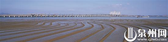 蓝蓝泉州湾上,主体轮廓已显的福厦客专泉州湾跨海大桥迎着朝阳,挺着贝壳形曲线桥塔,巍然屹立着。与相邻的泉州湾大桥(高速公路桥)并驾齐驱,犹如两条巨龙盘踞湾面,蔚为壮观。大桥全长20.287公里,海上桥梁长8.96公里,按350公里/小时的通行速度,届时高铁过桥只需约90秒。