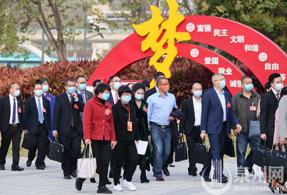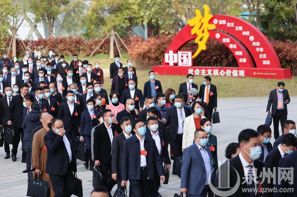 与会人员陆续走向泉州人民会堂。