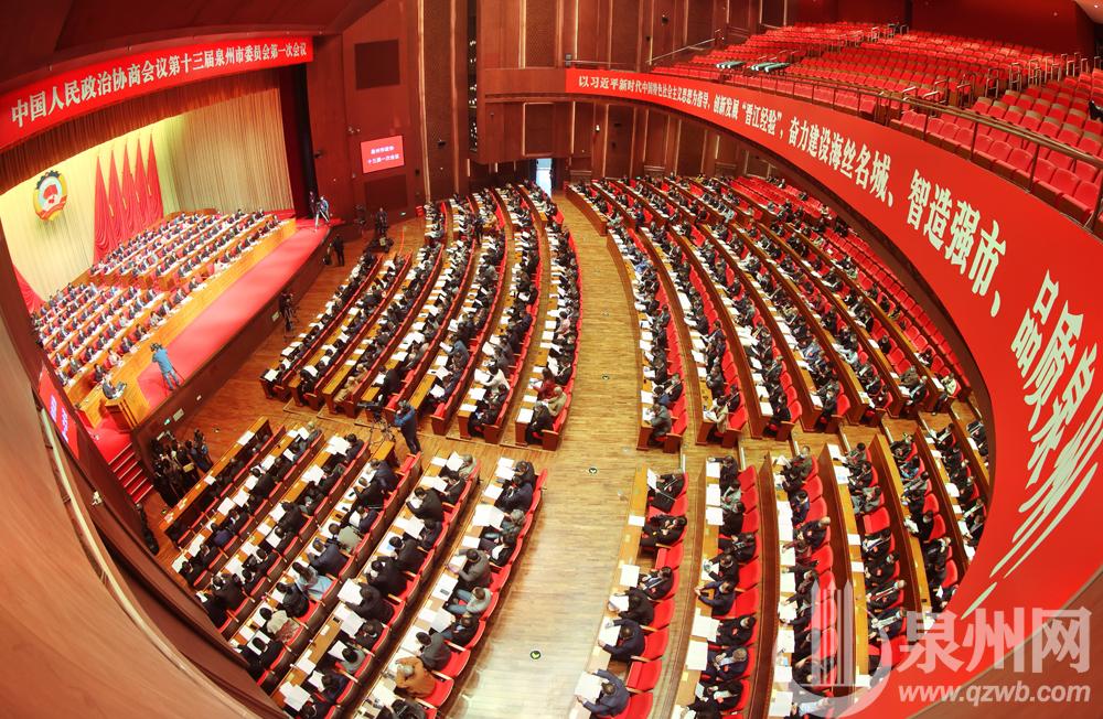 中国人民政治协商会议第十三届泉州市委员会第一次会议今日在泉州人民会堂开幕。(陈起拓 张九强 摄)