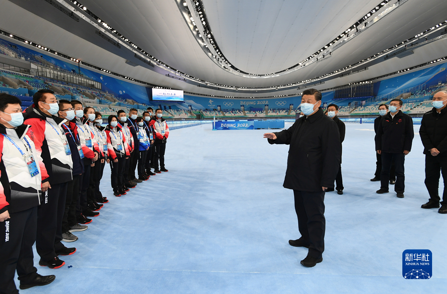 1月4日,中共中央总书记、国家主席、中央军委主席习近平在北京考察2022年冬奥会、冬残奥会筹办备赛工作。这是4日上午,习近平在国家速滑馆考察。新华社记者 谢环驰 摄