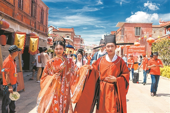 “披罗衣之璀璨兮,珥瑶碧之华琚。”“步裔裔兮曜殿堂,婉若游龙乘云翔。”“鸳鸯钿带抛何处,孔雀罗衫付阿谁”……当你读到这些描写汉服之美的诗词,我想,你必会沉醉于它的璀璨华美。而在现实生活中,在一些活动场合,在一些古老街巷,也越来越多地能见到身着汉服、徜徉其中的人们,裙裾飘飘,典雅灵动,让人仿若回到宋元,回到那曾经的海丝泉州。