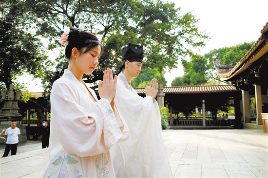 在泉州,有一群汉服爱好者。平常或重要传统节日,他们会穿上汉服,或邀友聚会,或街头漫步。他们所穿汉服,或素雅,或华丽,总能吸引身旁人们的注目、艳羡。