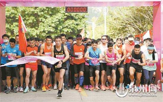 福建省全民健身运动会晋江元旦迎新登高活动在晋江市展馆鸣枪起跑,400多名跑者共同欢庆新年到来。 (黄文楚 摄)